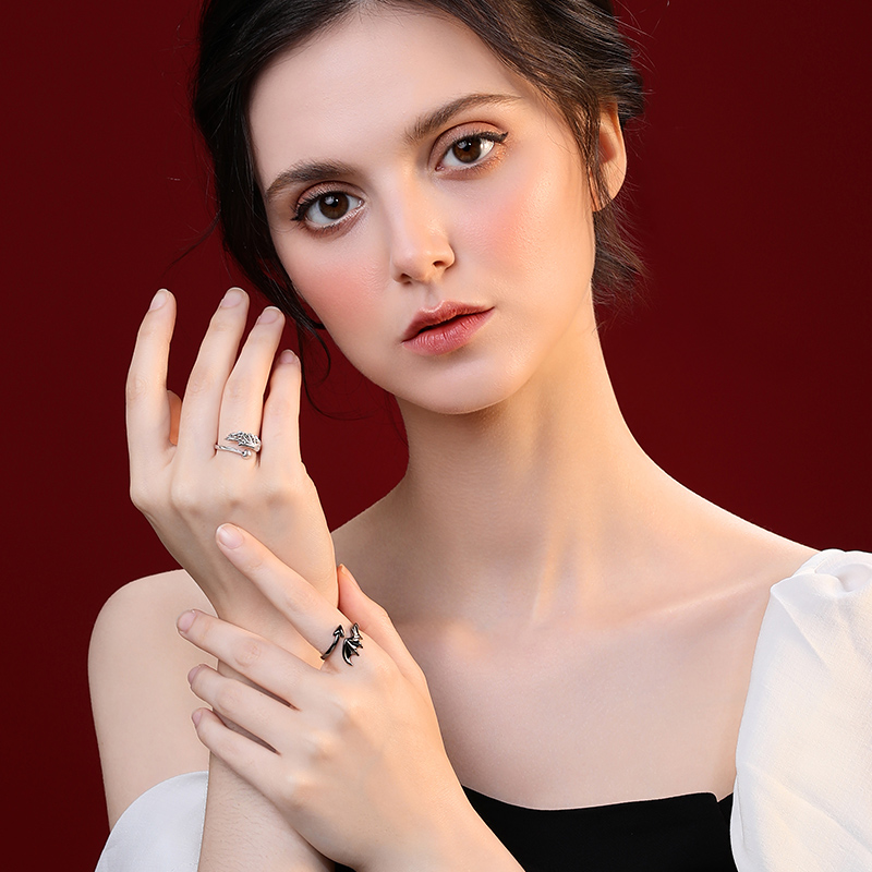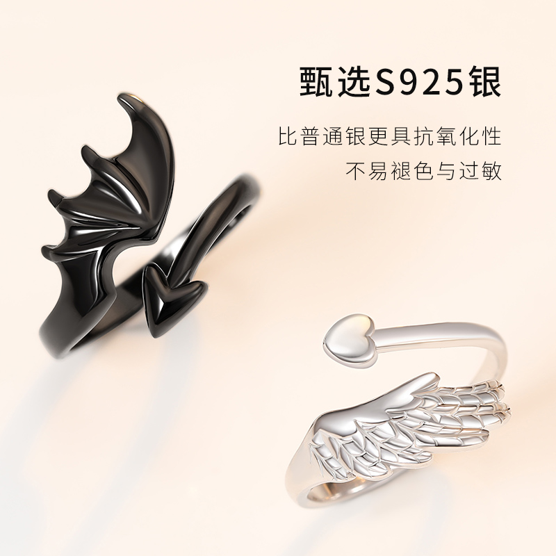 Angel Devil Minimalist Design Couple Rings Pure Silver Pair of Men and Women Valentine's Day Tidal Opening Tritium Gas to the Ring