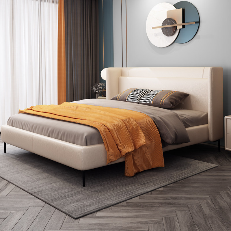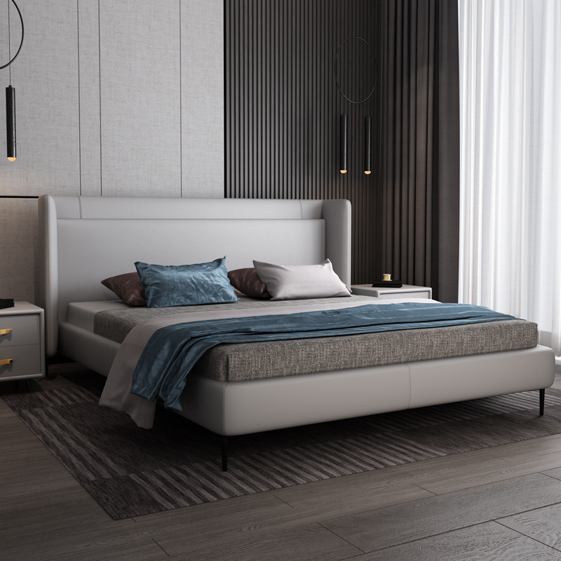 Pure simple modern luxury leather bed 1 8 meters Master bedroom double bed Minimalist style Italian wedding bed 1 5 meters