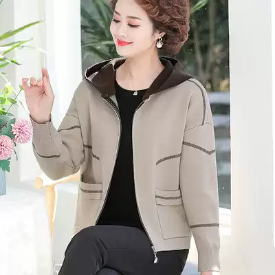 2021 new middle-aged and elderly women autumn knitted hooded jacket short 40-year-old 50 mother foreign pie jacket coat thin