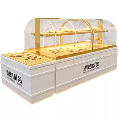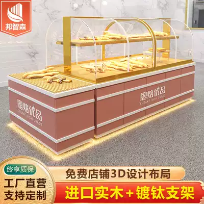 Bread display cabinet Middle Island side cabinet cake shop model cabinet curved glass stainless steel titanium plated pastry display counter
