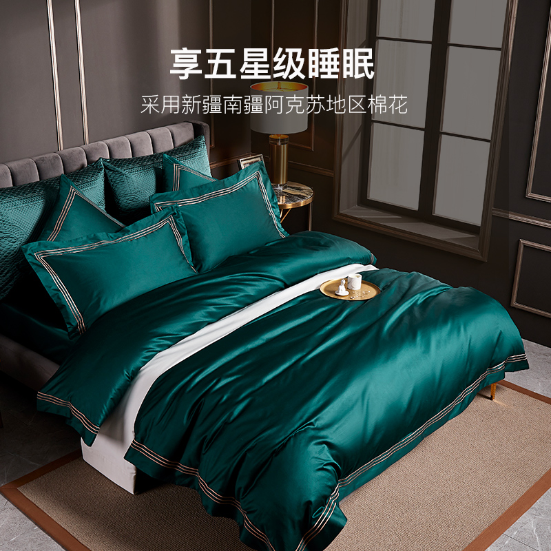 Pure crown light luxury 180 long-staple cotton four-piece set Cotton pure cotton 100-bed single quilt cover Bed Li European bedding