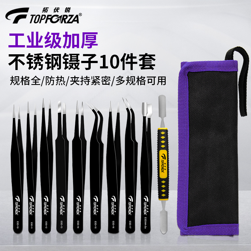 Tuo Furui stainless steel tweezers pointed elbow flat head flat head high precision industrial tweezers group crowbar clip tool