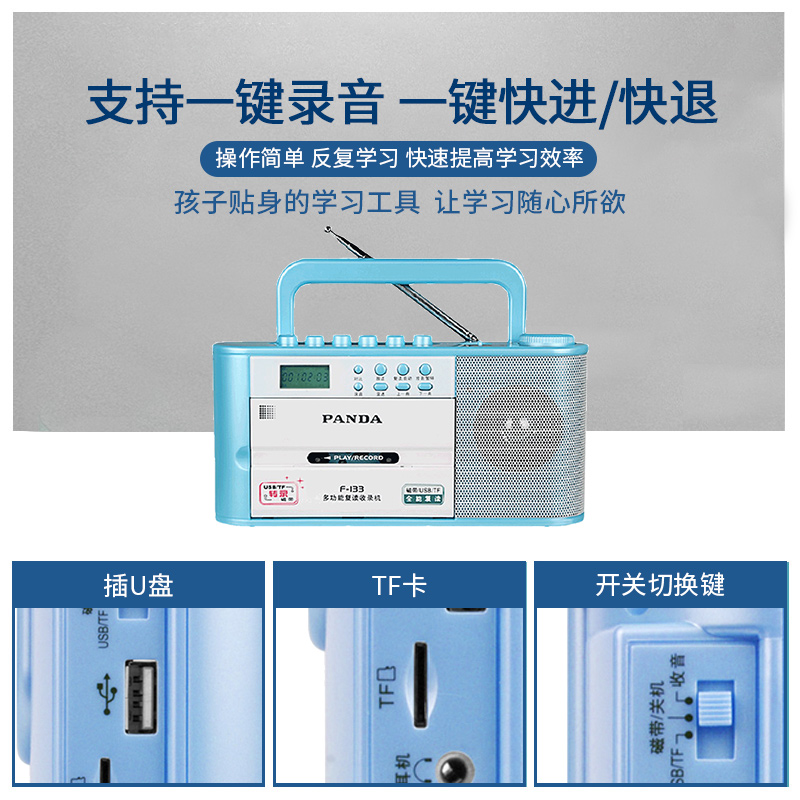 Panda F-133 Tape recorder Tape plug-in machine Tape recorder recorder recorder recorder recorder repeater Small cassette machine Audio vintage retro U disk radio player