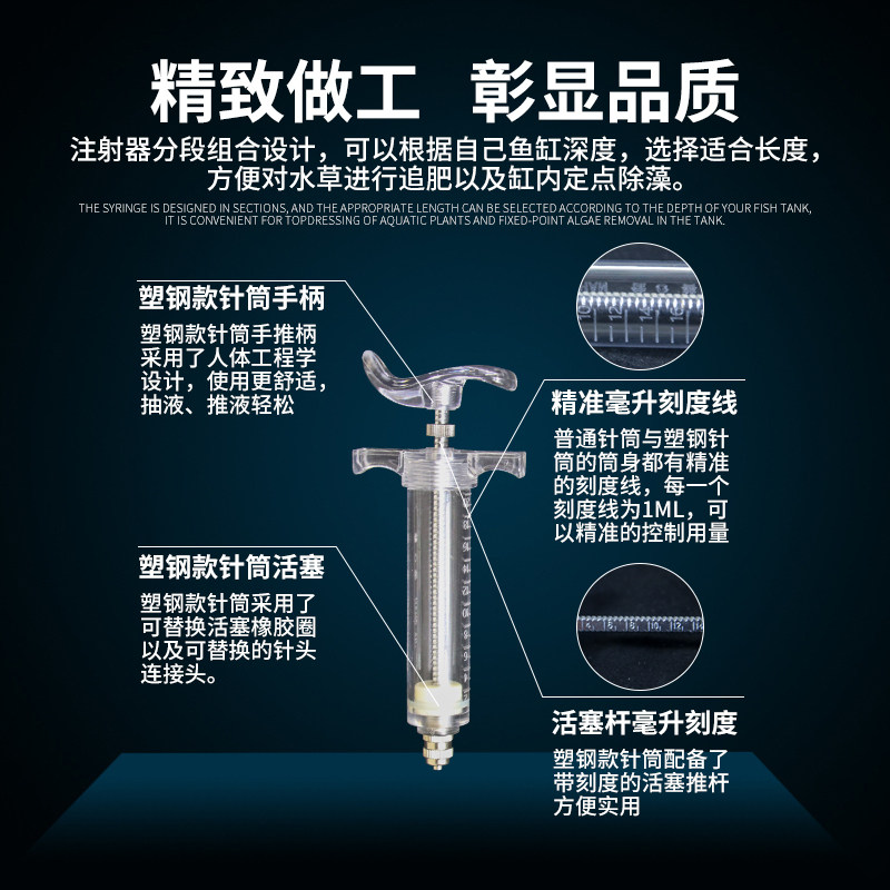 Aquarium grass cylinder fertilizer device liquid fertilizer syringe extended needle needle aquarium algae killer fixed-point injection jet
