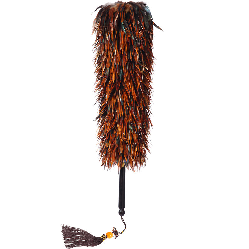 ★ Selected rooster hair ~ pure handmade ancient threading process ★ solid wood handle - hair area 40cm back hair encryption total length 60cm (M4018) solid wood handle - top flip encrypted hair area 40