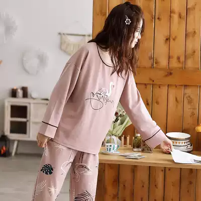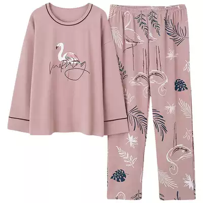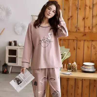 Pajamas women's spring and autumn cotton comfortable long-sleeved Korean version fat mm plus fat plus size can go out home clothes two-piece set
