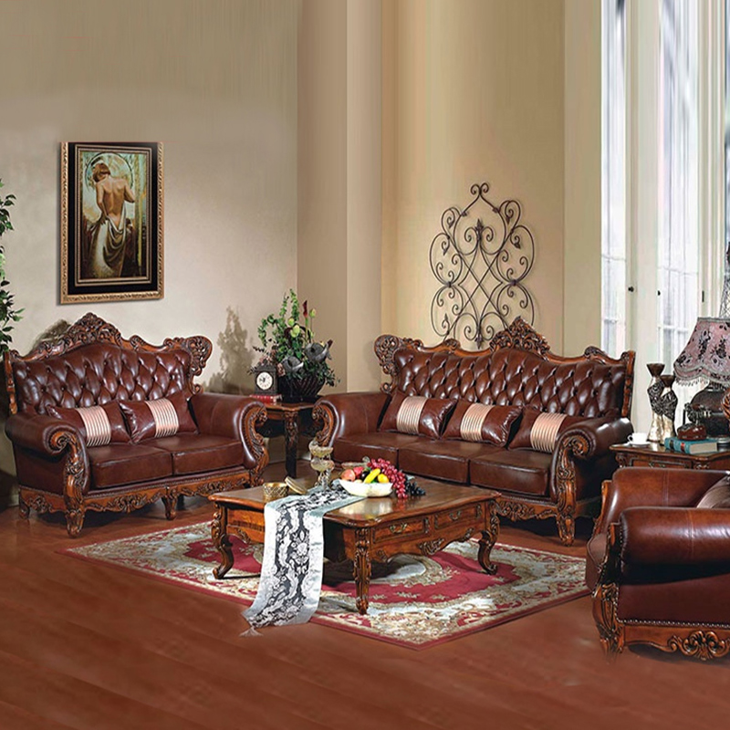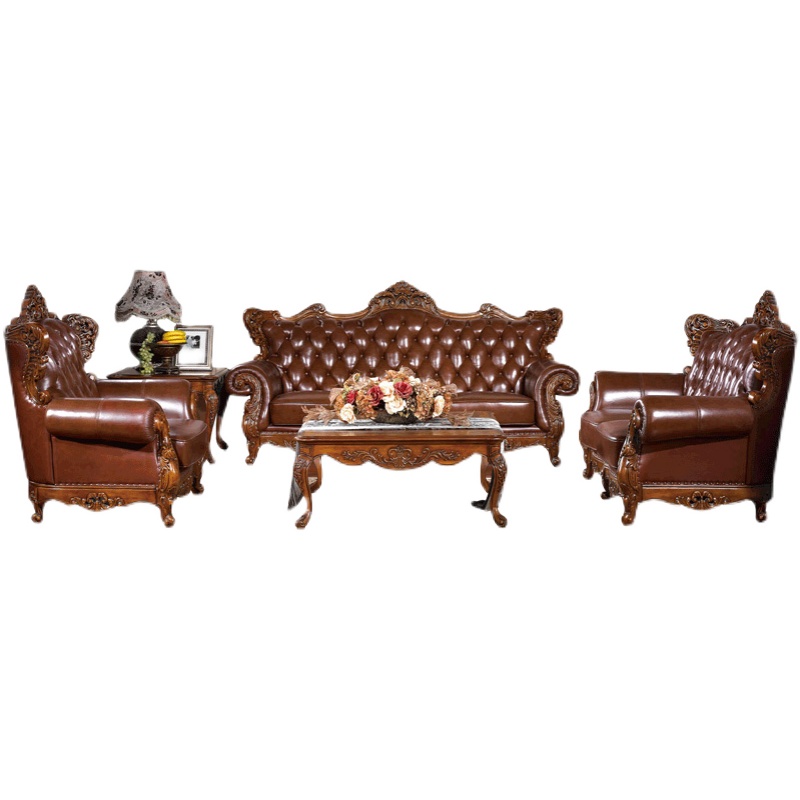 American Solid Wood Sofa Eurostyle Luxury Vintage Sofa Combinations 1 2 3 Villa Upscale Furniture Imported Genuine Leather
