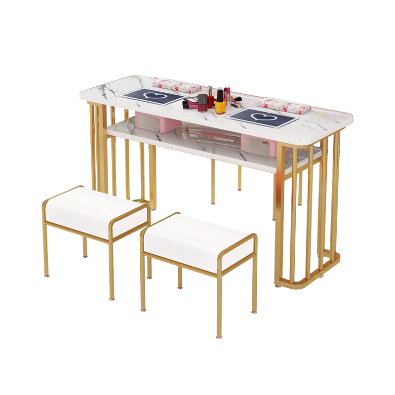 Nail art table and chair set Nordic single double net red gold double manicure table imitation marble economy table