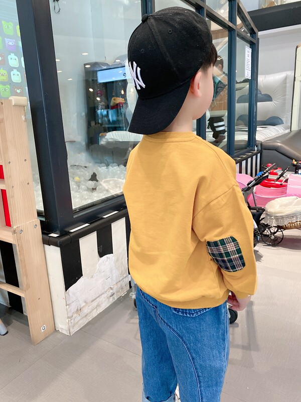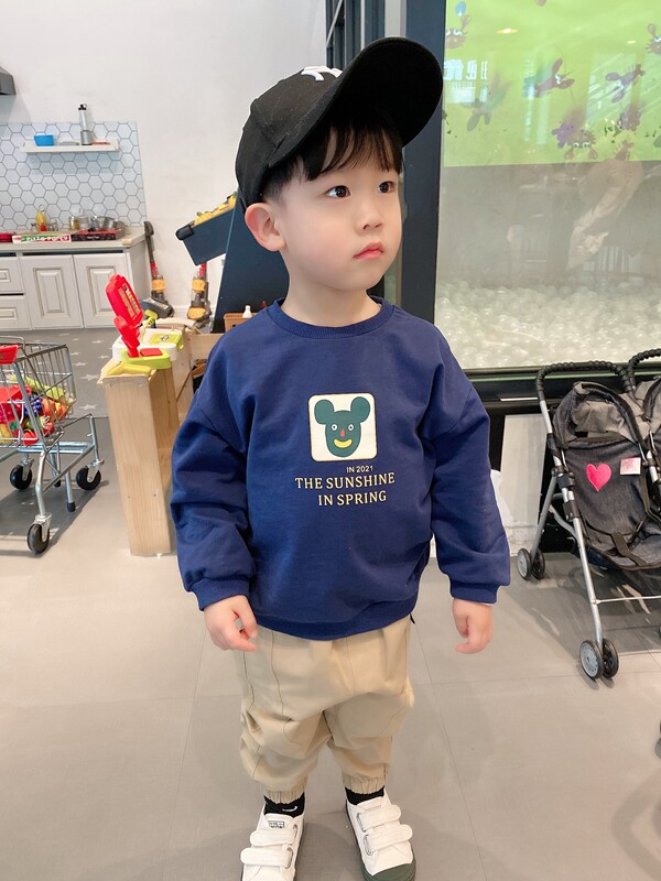 Baby Spring Dress Foreign Pie Collision Color Patched Boy Middle Boy Spring Fall Pure Cotton Cover Head Cartoon Blouse Child Clothing
