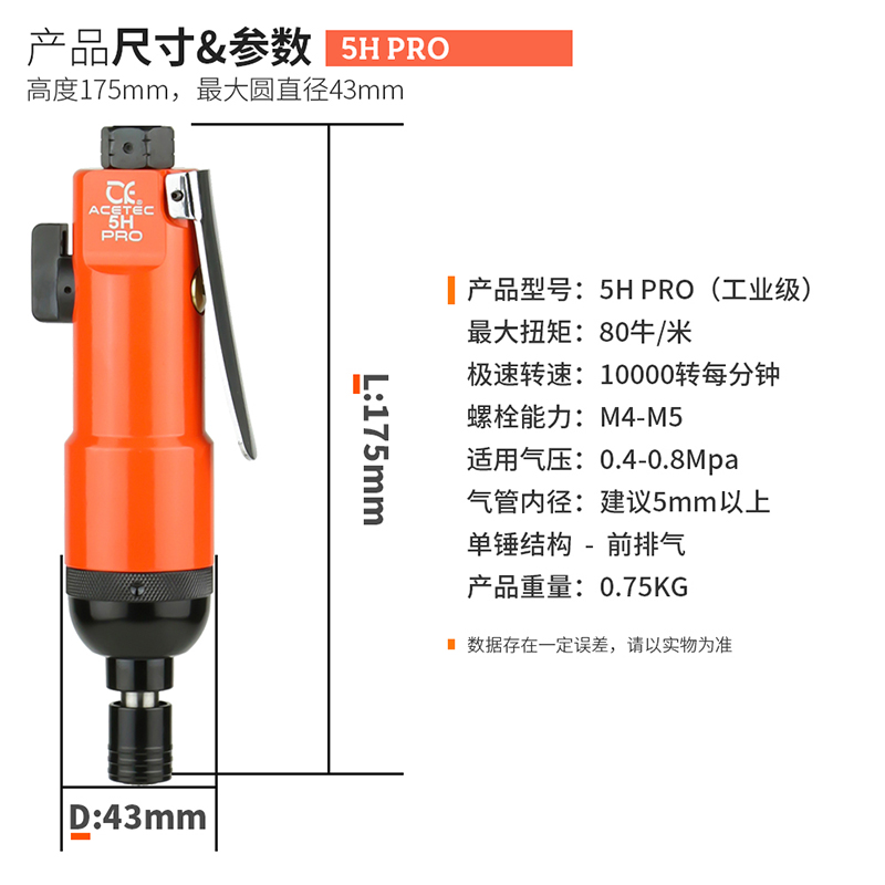 ACETEC industrial pneumatic screwdriver 5H pneumatic screwdriver gas pneumatic tool pneumatic screwdriver pneumatic screwdriver gas screw driver