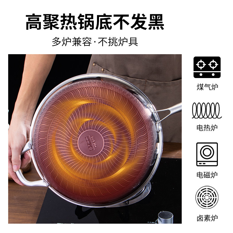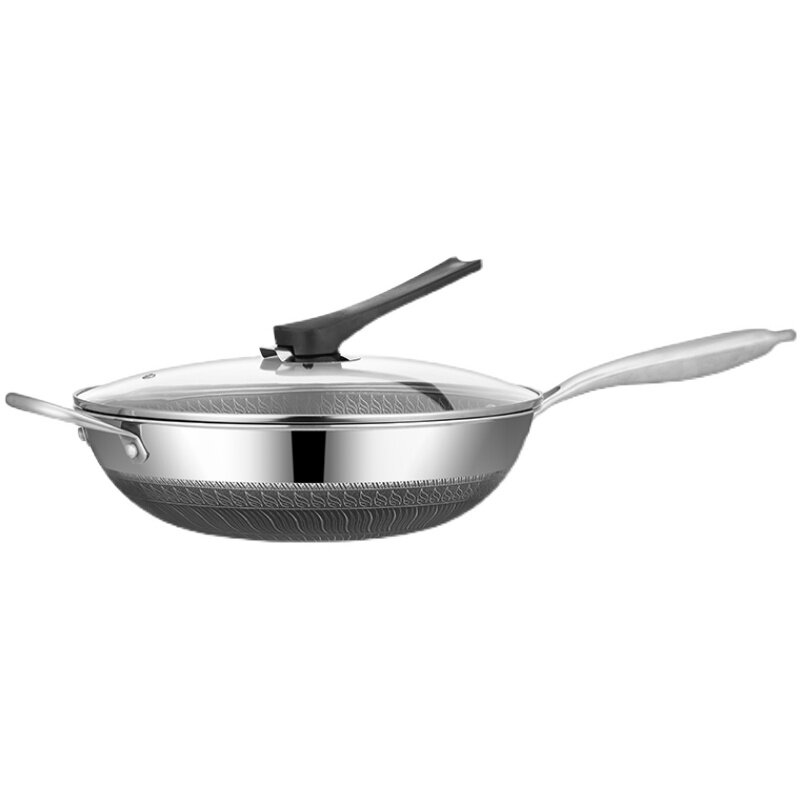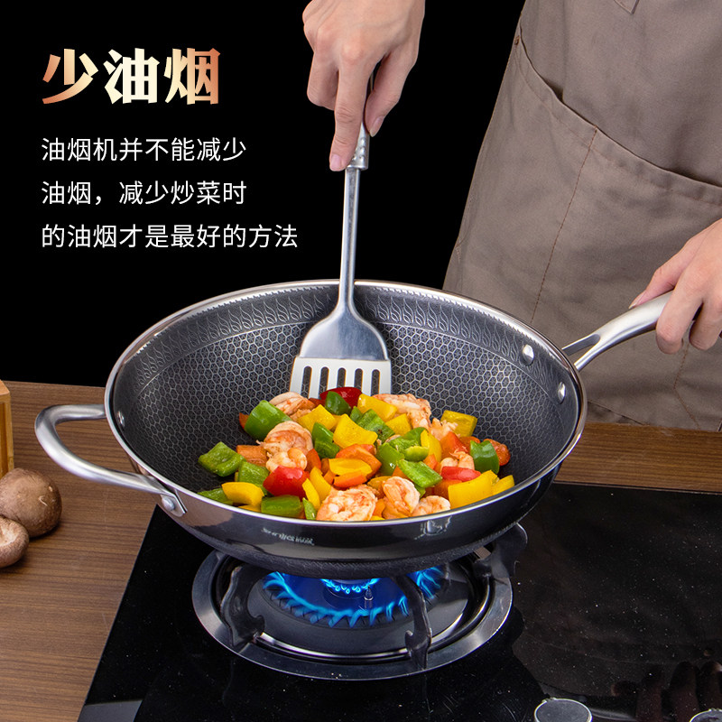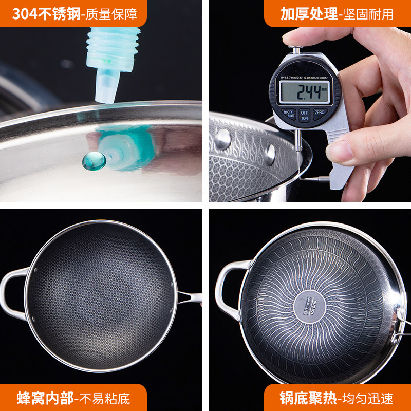 Thickening 304 stainless steel frying pan without oil smoke No coating honeycomb tripod non-stick induction cookware gas frying pan bottom pan