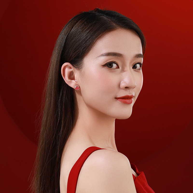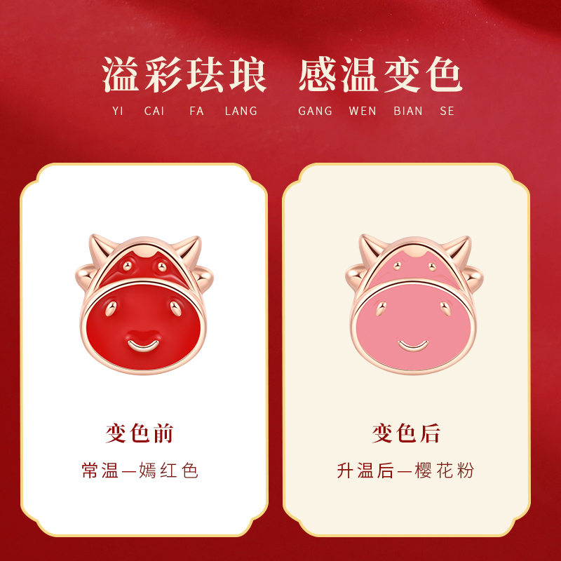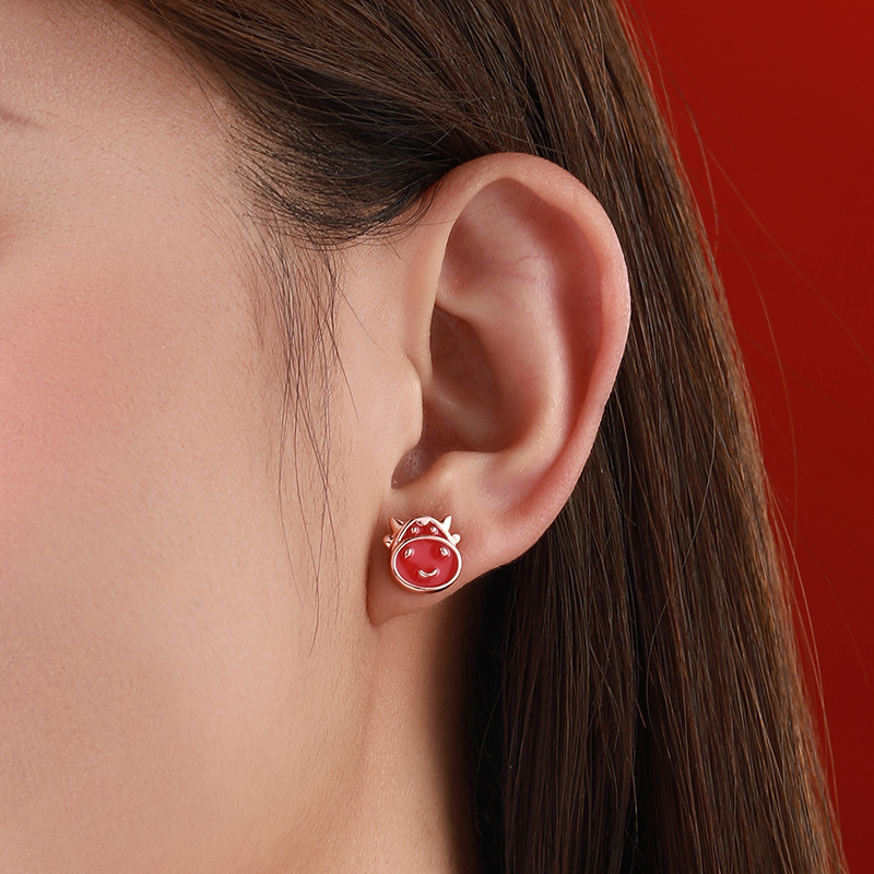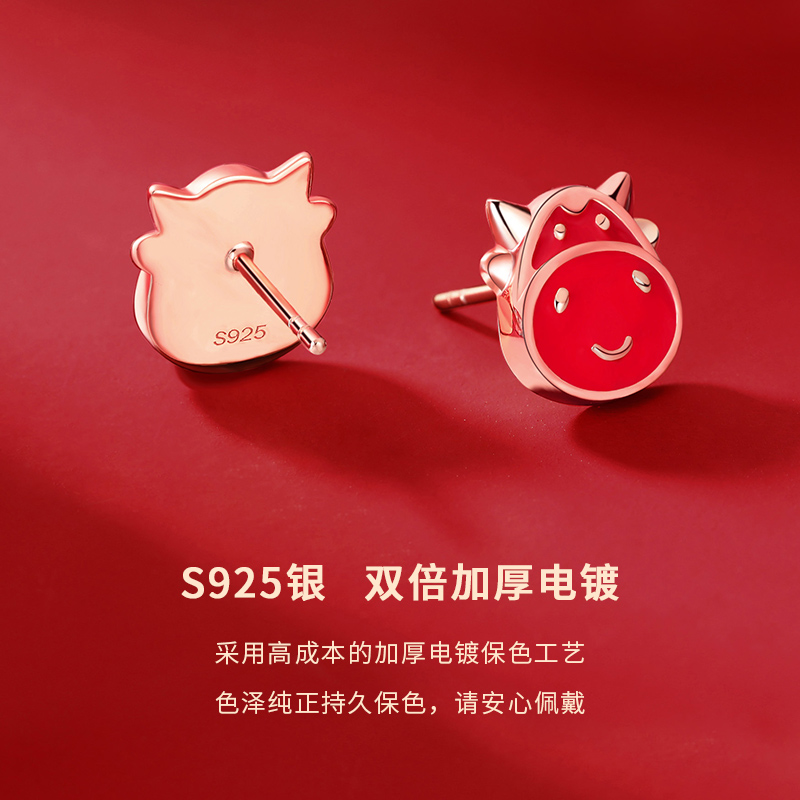 Cute Bull Red Ear Pin Ben Life Year Gift Woman Pure Silver Rushing Warm Discoloration Bull year raw Shore suitable for the New Year's ear wear