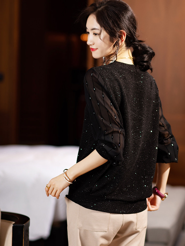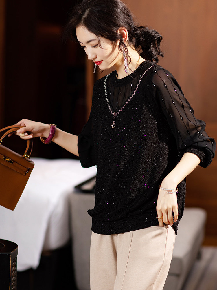 Clearance pick-up leaks first-line counters withdraw tail orders big-name foreign trade women's clothing bright silk splicing thin T-shirt lace small shirt