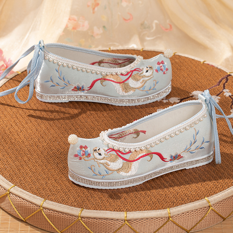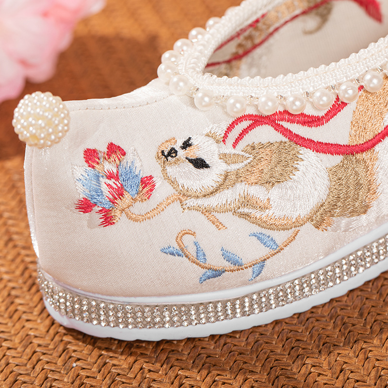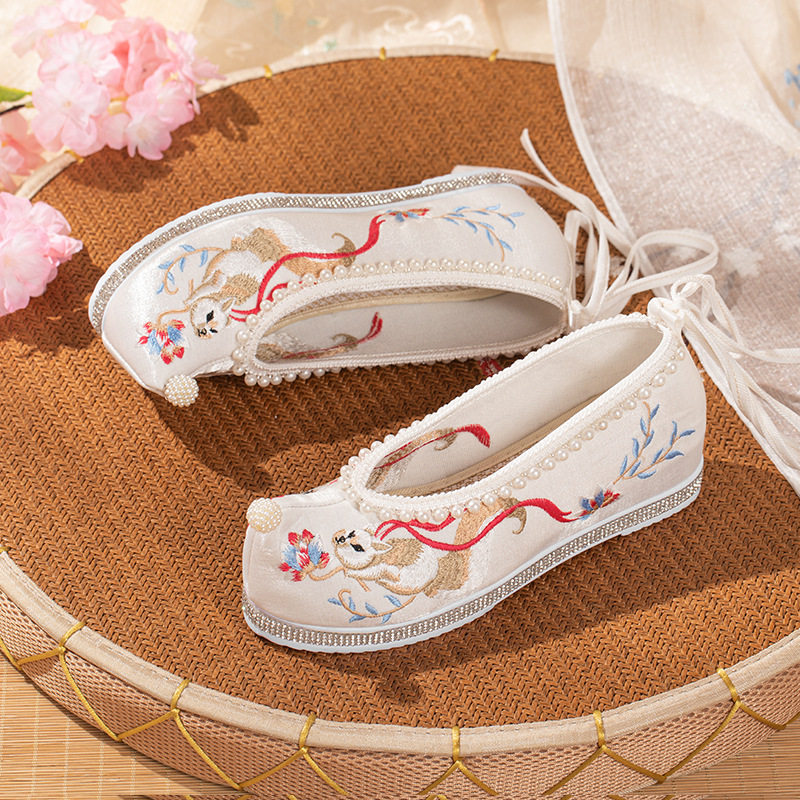 Leusong 2021 Spring new teething Footwear Footwear String Beads Lace Embroidered Cloth Shoes Female inner heightening mix with ancient wind