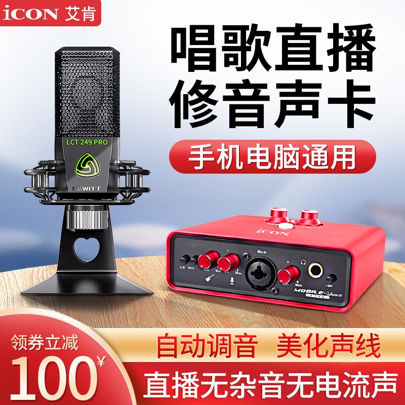 ICON mini Aiken sound card live broadcast special singing mobile phone computer general equipment full set of official flagship store Net red tremble professional usb external microphone set recording voice changer