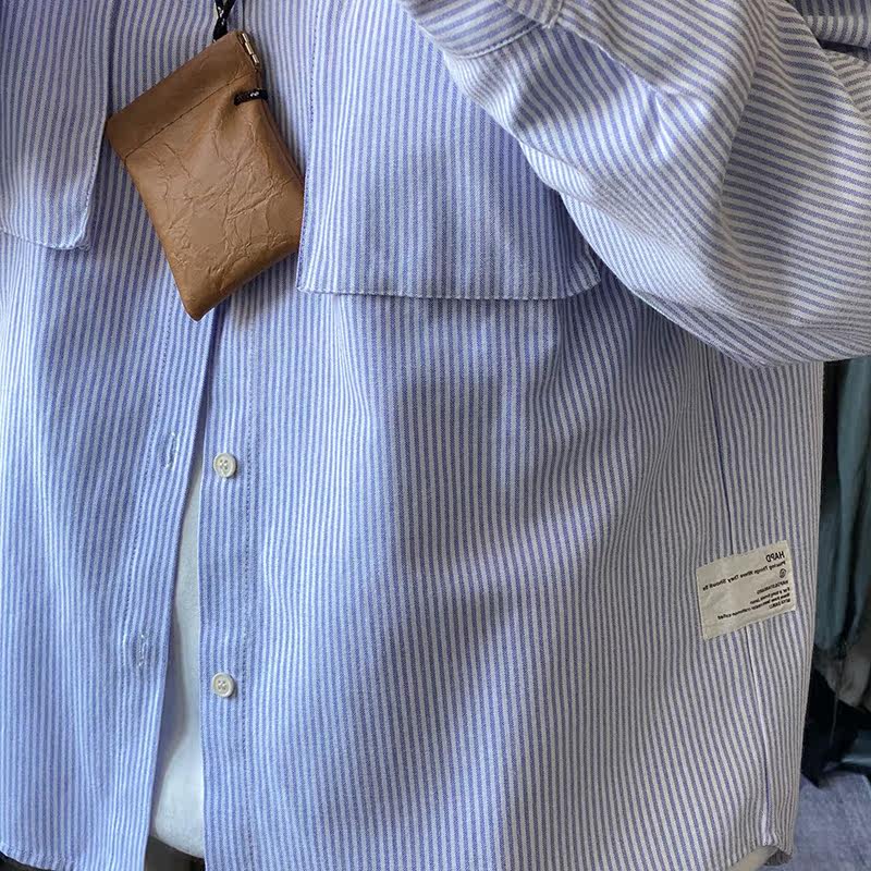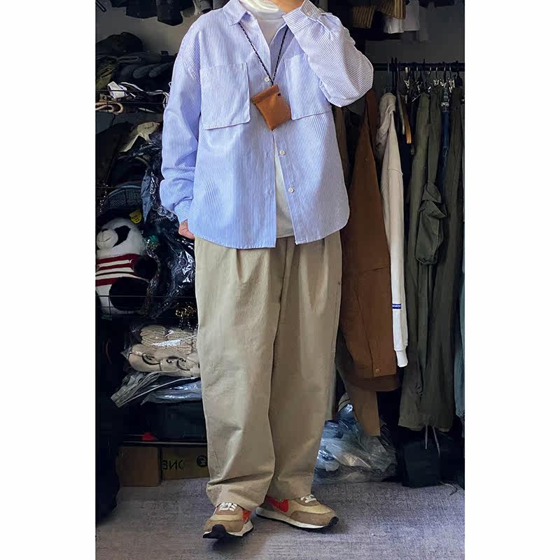 RCMAN Day Ensemble Style Wearing a touch of high level Sensation Design Sense Cityboy Blue Striped Shirt Loose man and woman