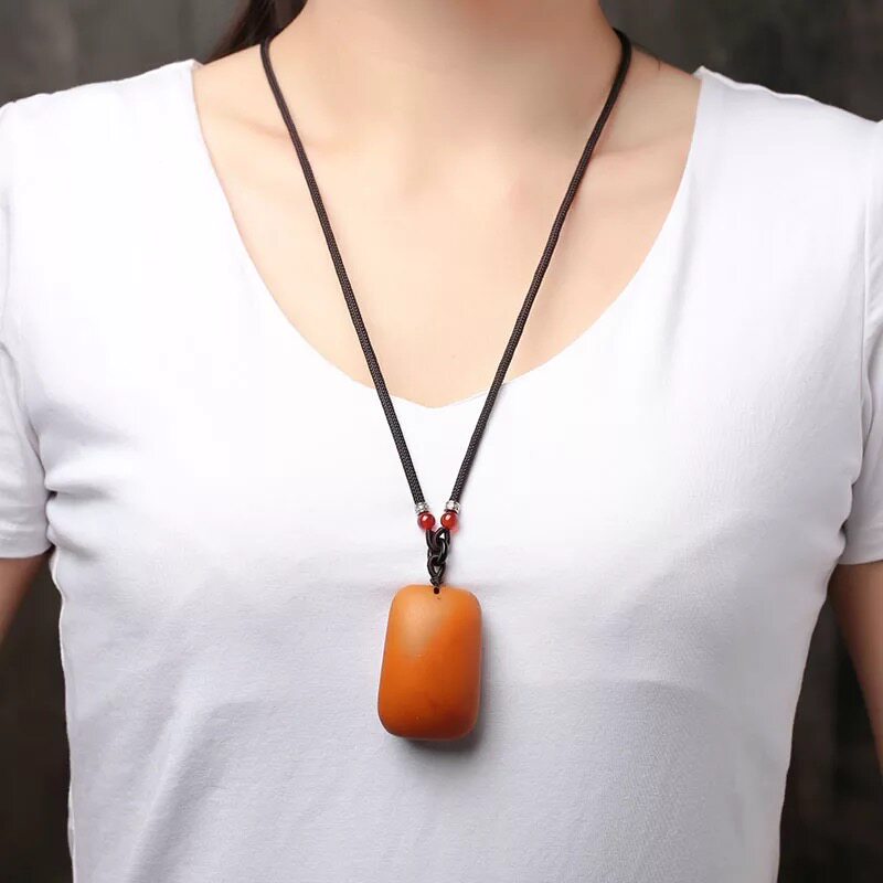 Natural Amber Old Honey Wax Pendant Without Trouble WATER DROP MEN AND WOMEN'S SWEATER NECKLACE NATIONAL WIND PENDANT