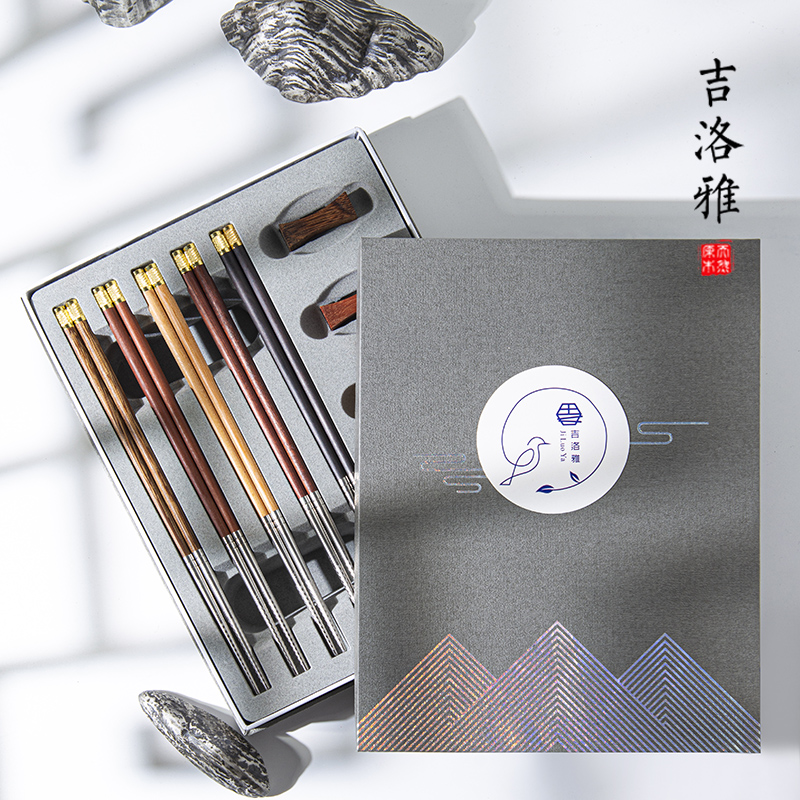Jiluoya household high-grade mahogany solid wood antibacterial non-slip high temperature resistant 316 stainless steel high-end gift box fast child