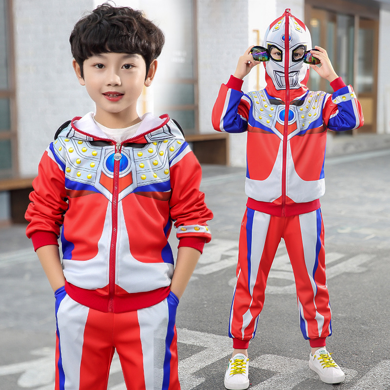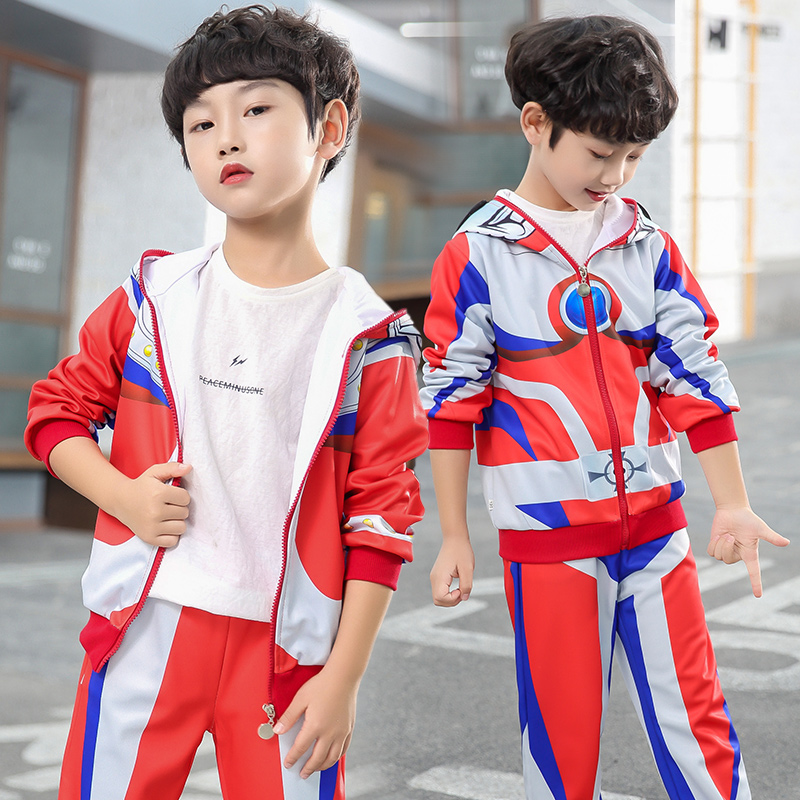 Children's clothing boys 2022 new ultraman pattern clothes autumn tide style children's leisure sports thick cotton suit