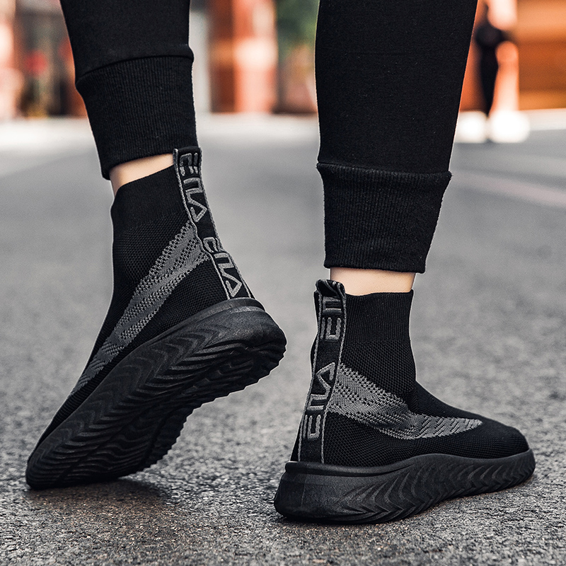 High Cylinder Board Shoes 2022 Spring New Net Face Men's Shoes Black Bottom Middle Cylinder Sails Shoes Lovers Women Sleeves Socks Shoes
