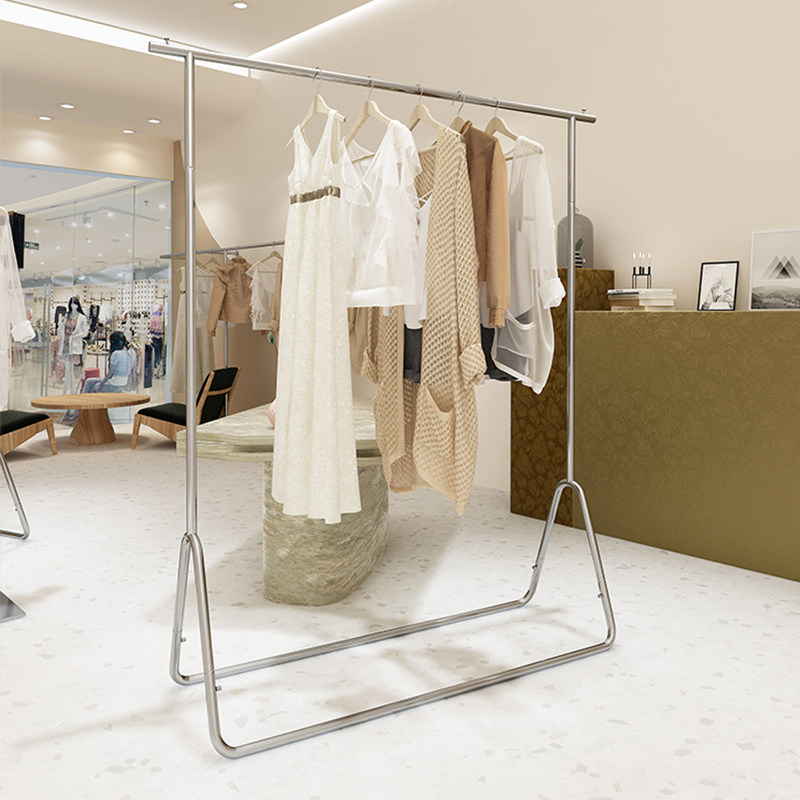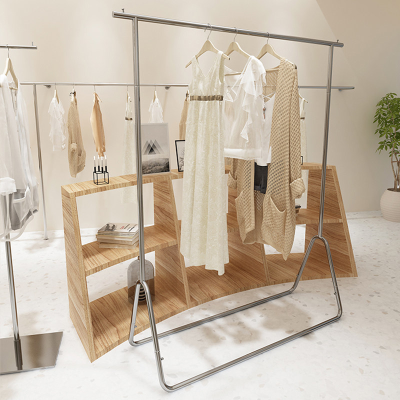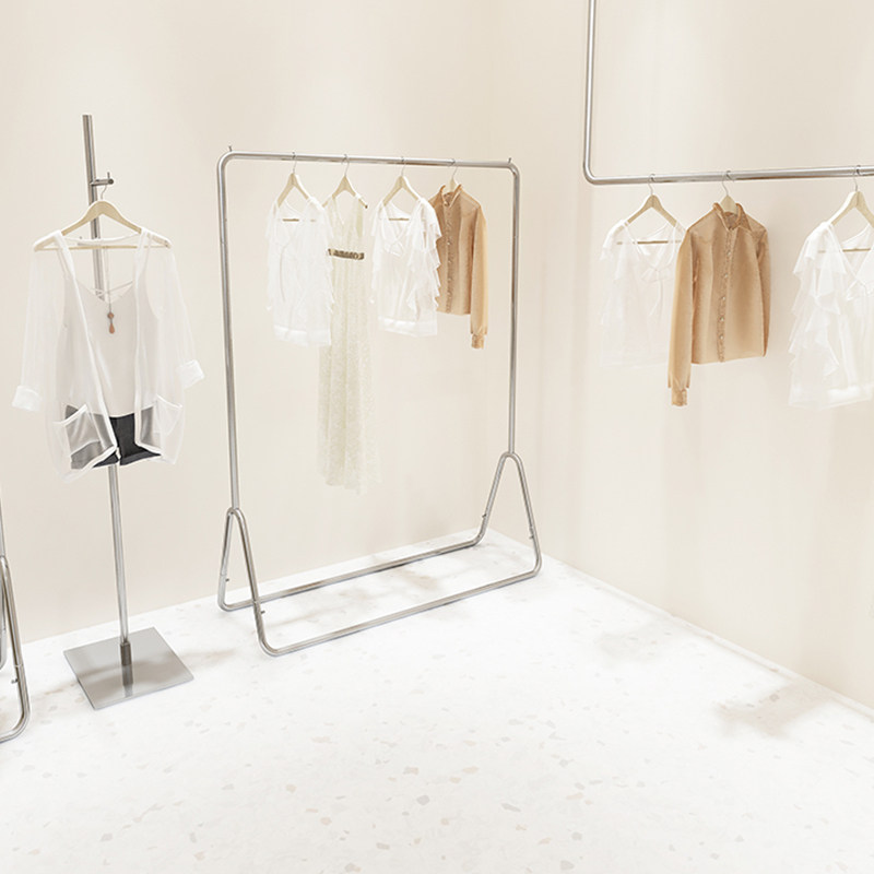 Clothing store display stand Floor-standing hangers Silver stainless steel brushed decorative shelves Women's special display rack