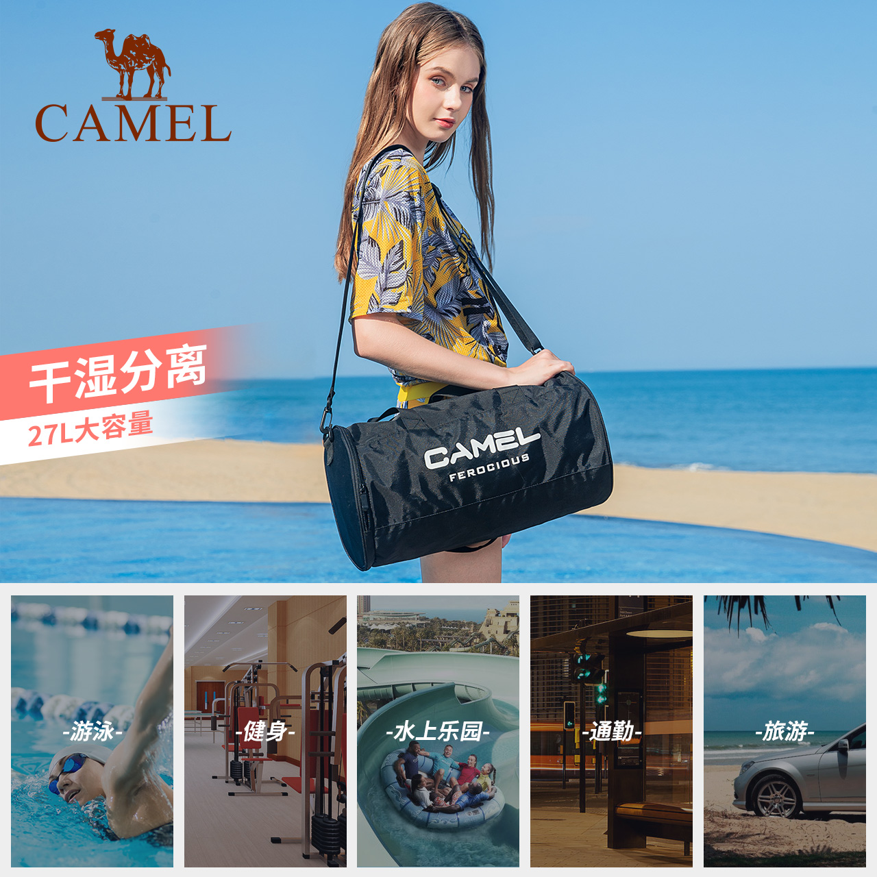 Camel swim bag men's and women's large capacity handbag dry wet separation fitness exercise backpack beach travel storage bag