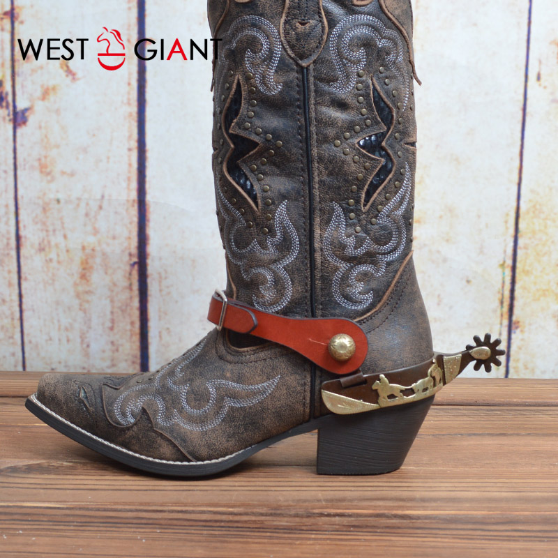 Western Giant Western-style cowhide spurs with spurs rubber sleeve women's children Western denim spurs belt Western giants