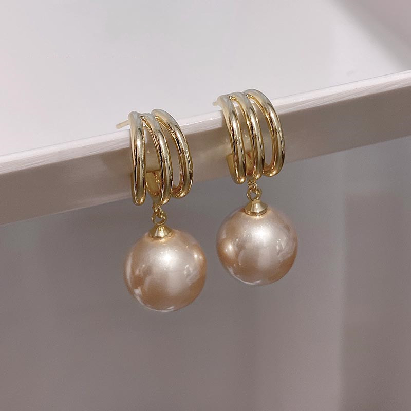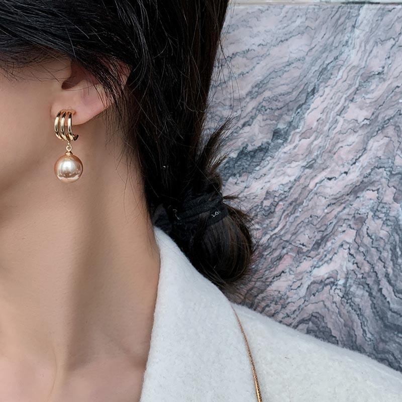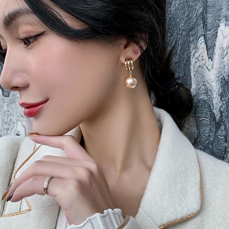 Earring 2021 new tide champagne powder pearl ear crash Korea temperament network red ear decoration high retro atmosphere