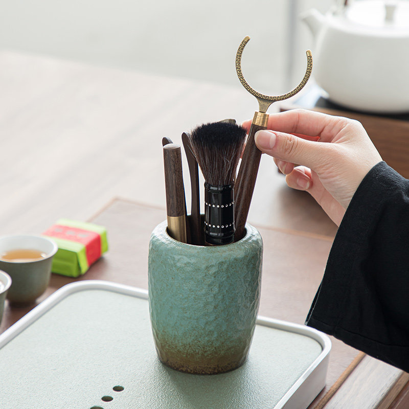 Daiqing tea ceremony six gentlemen ebony kung fu tea set accessories tea knife tea clip brush tea needle raising pot pen holder set