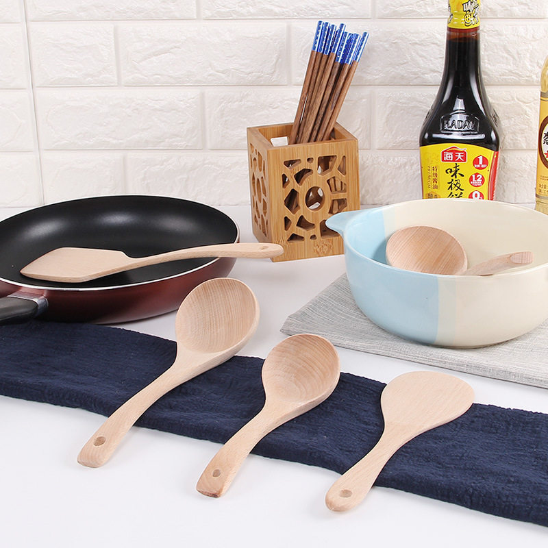 Pinkin casserole special without lacquered wood Shovel Wood Spoon Without Dip Pan Special Pan Shovel Long Handle Soup Spoon Kitchenware Cover Set