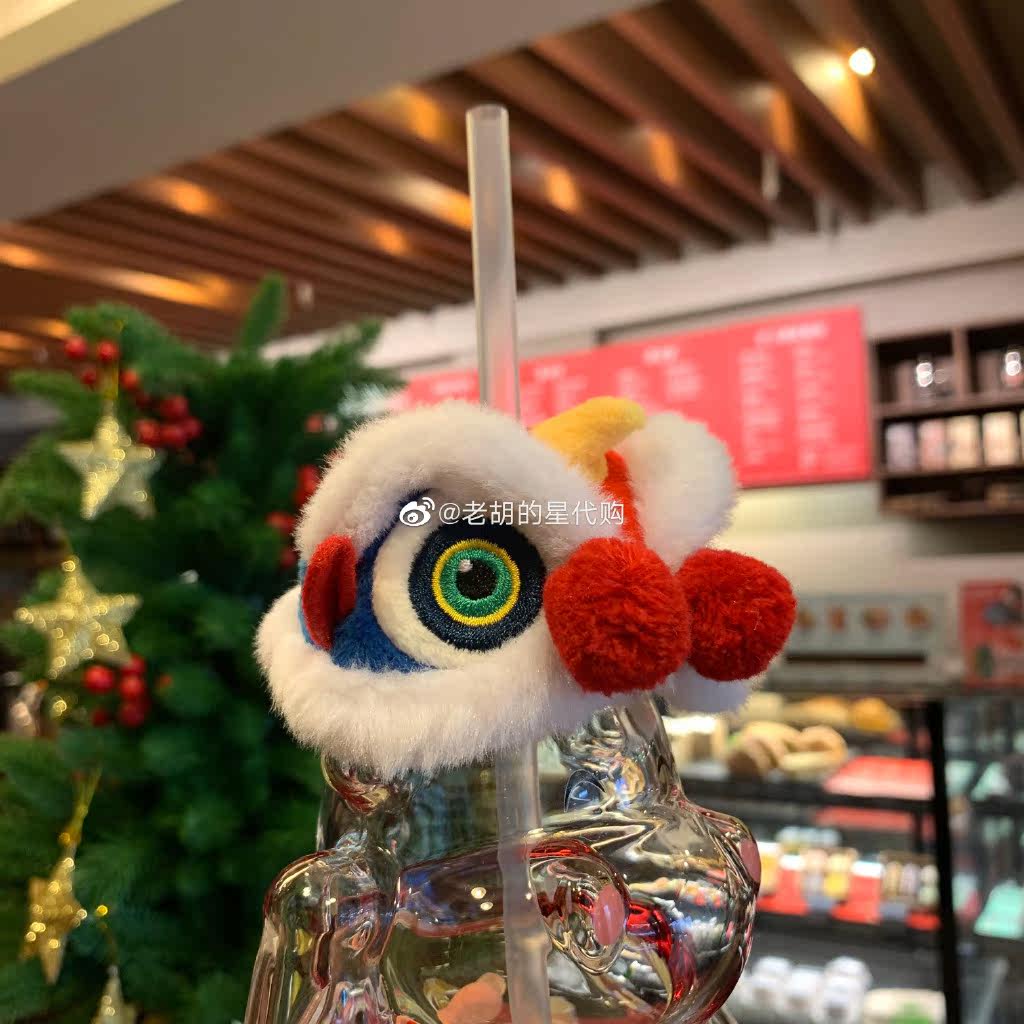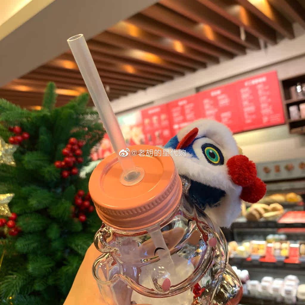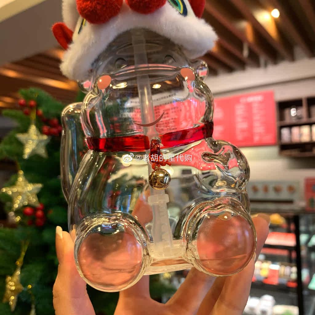 Starbucks 2021 Bull year dance lion bell Bull Bull Styling Year Taste Headgear Transparent Glass Straw Cup Drinking Water Mug