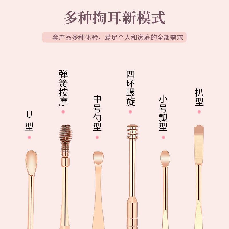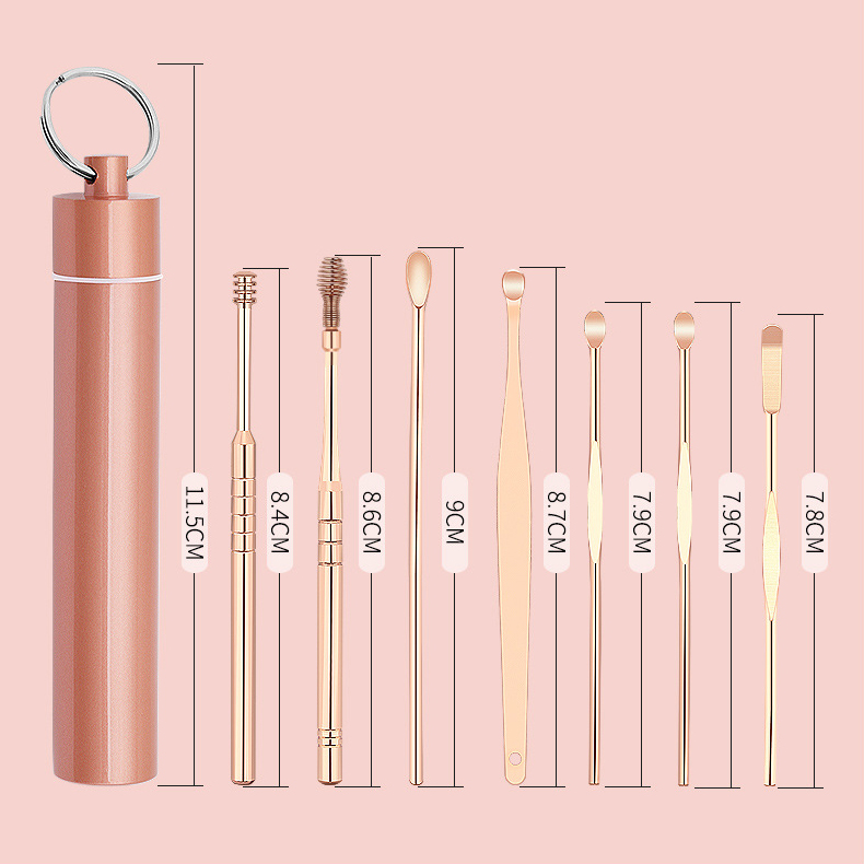Metal ear spoon set portable adult elbow ear digging spoon spring massage ear pick stainless steel ear wax cleaning tool