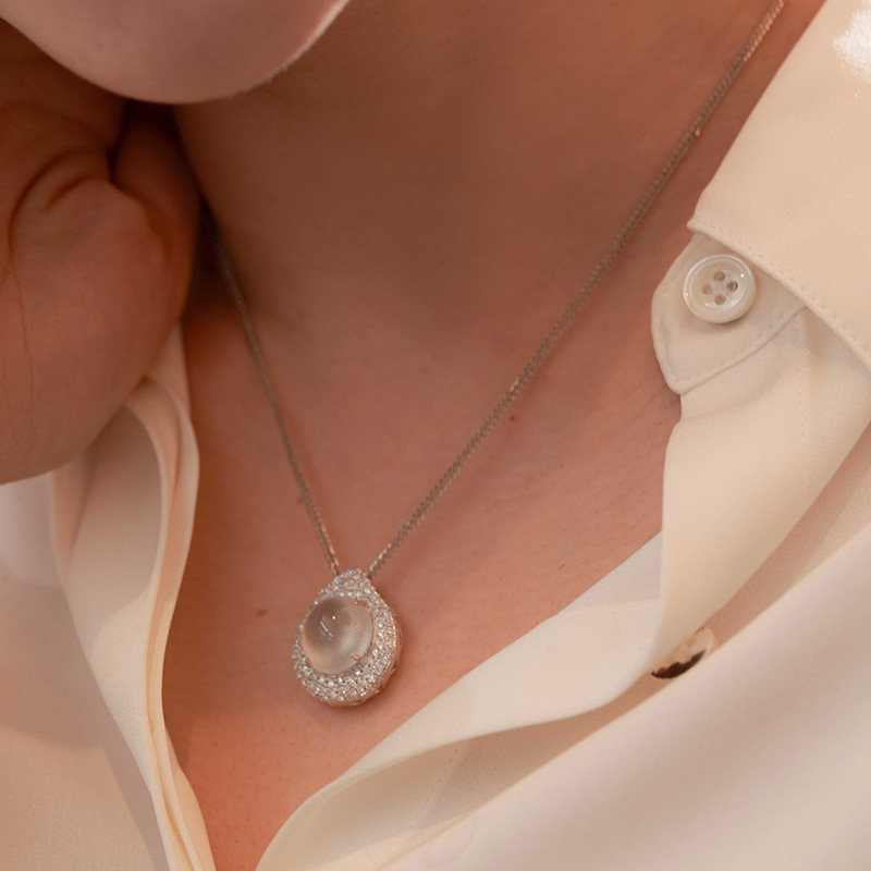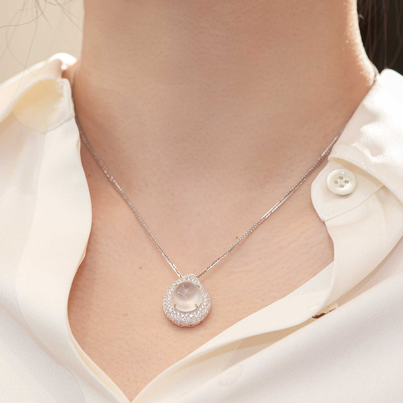 Fruit Lush Jewelery Natural Glass Seed Light White Emerald Pendant Female A Cargo 18k Gold Diamond Necklace Studded Customize