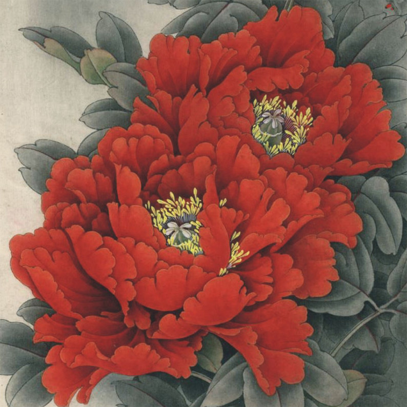 Working pen country painting Li Xiaoming white sketch manuscript in kind print manuscript peony four strips of screen 33 * 132 total of 4 with A color drawing-Taobao