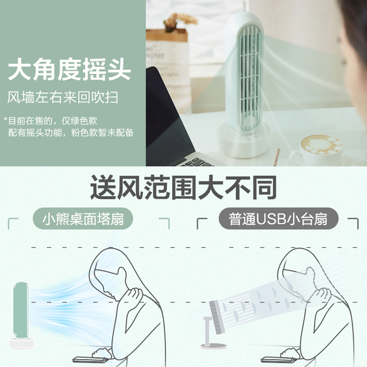 Small Bear Electric Fan Home Desktop Dorm Room Desk Office Large Wind USB No Leaf Negative Ion Small Tower Fan