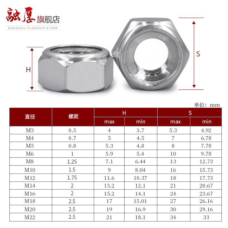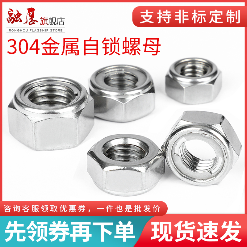 304 stainless steel metal hexagonal anti-slip nut resistant anti-slip self-locking screw cap M6M8M10M12