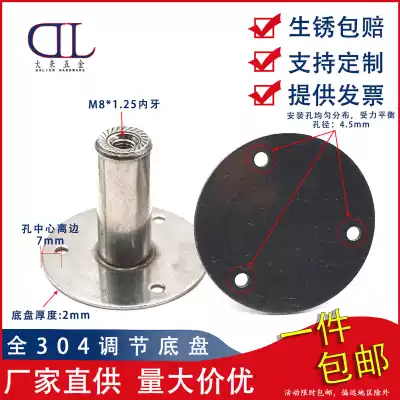 304 stainless steel pipe bracket adjusting base tray fixing Disc laser welding nut lifting base 50mm high