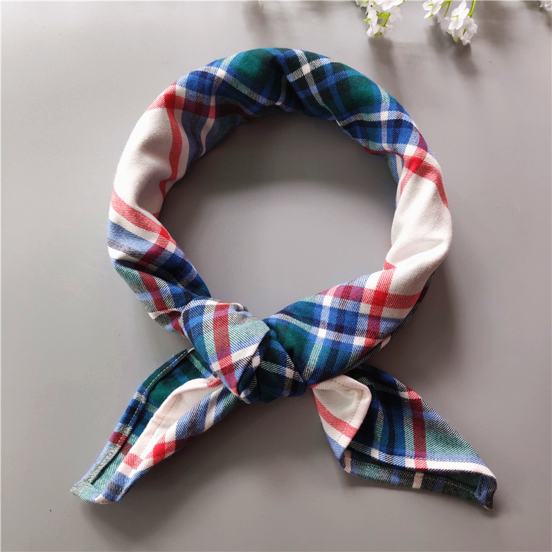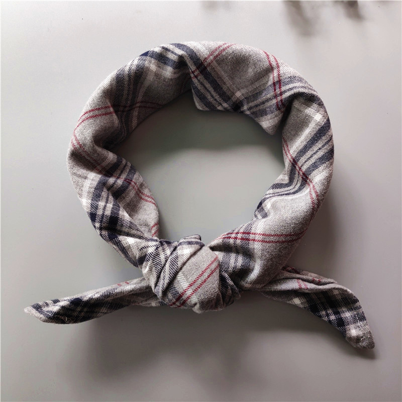 Brushed square towel Pure cotton cloth scarf Plaid scarf Male retro literary spring and autumn and winter Korean version of cotton small square towel Female
