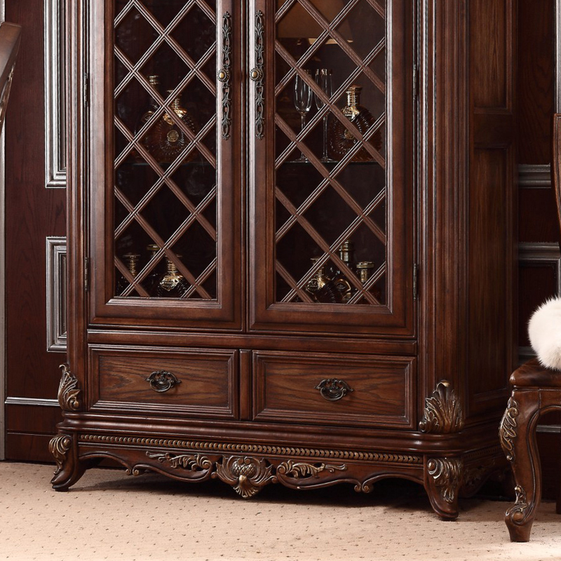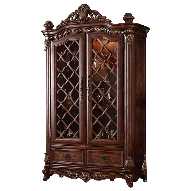 European style solid wood double door wine cabinet luxury American country retro living room side cabinet glass cabinet decorative cabinet jewelry cabinet