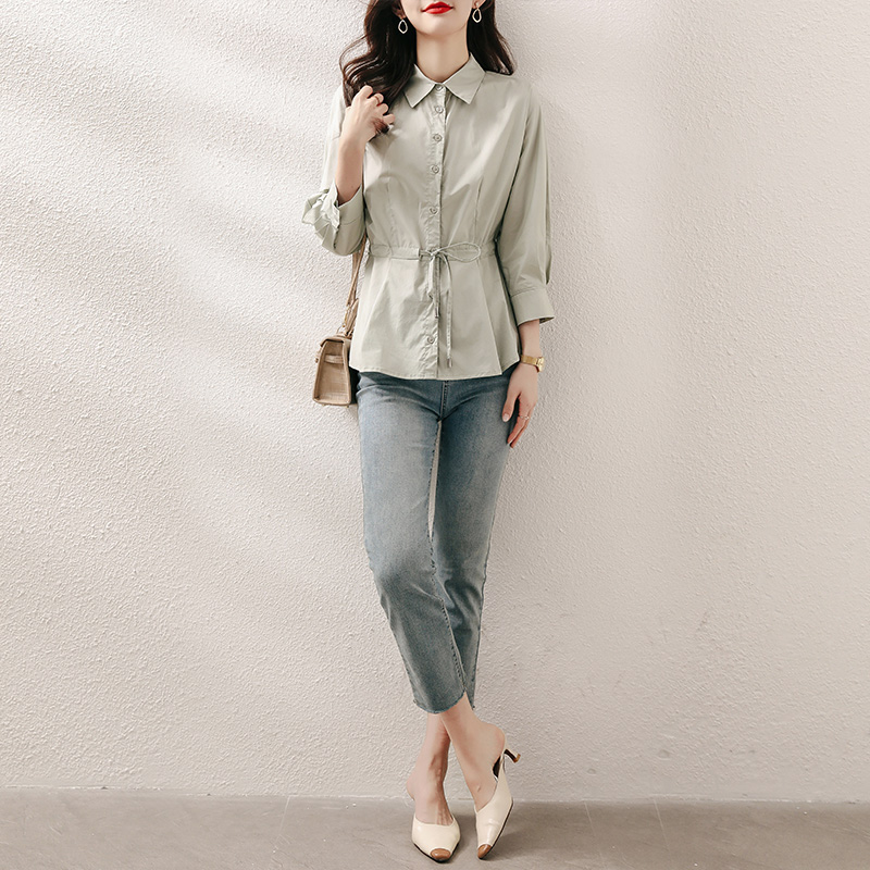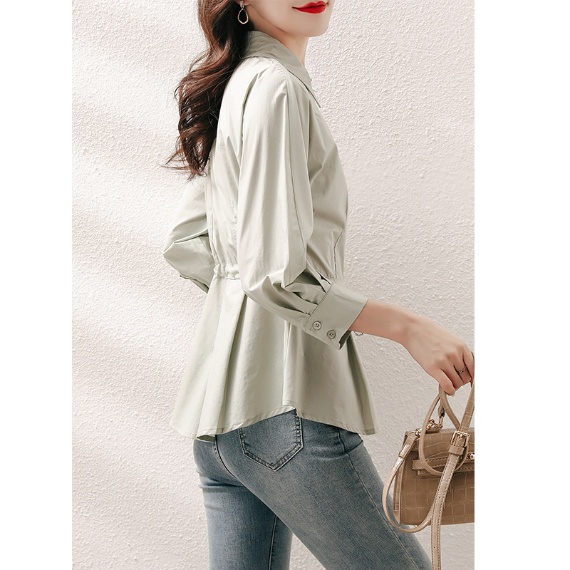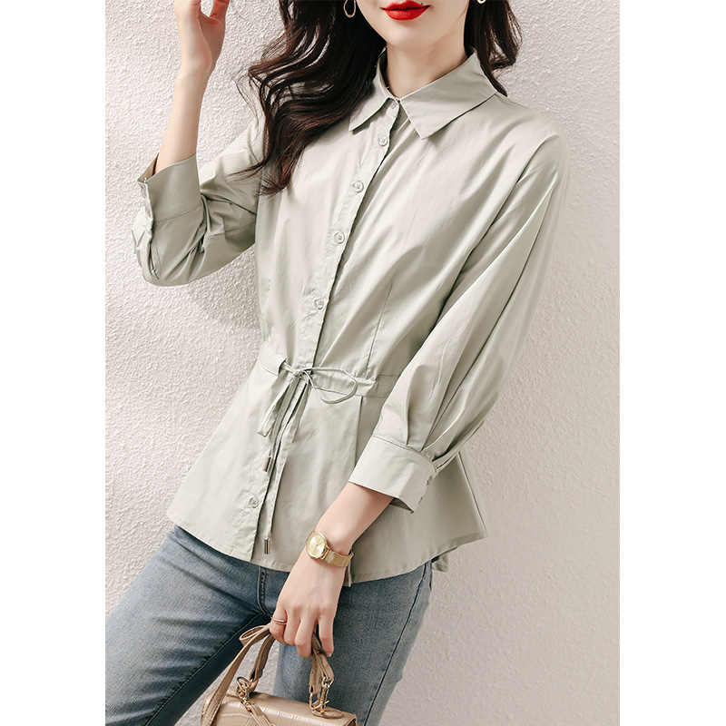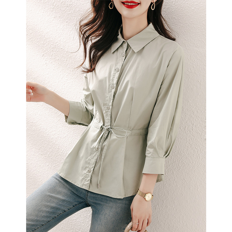 In autumn 2022, new high - end shirt female tummy thin sleeve tops and chic shirts to decrease age