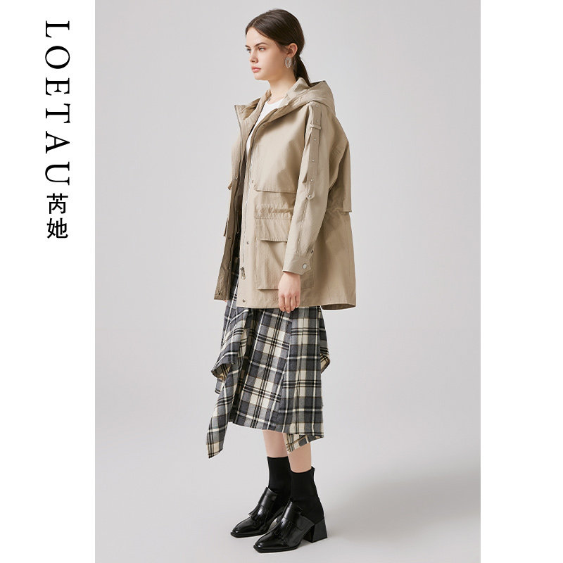 Wind Cloister Woman Medium Long Version 2022 Women Dress Spring Autumn Season New Korean Version 100 Hitch Casual Loose Fashion Tandem Cap Jacket Tide