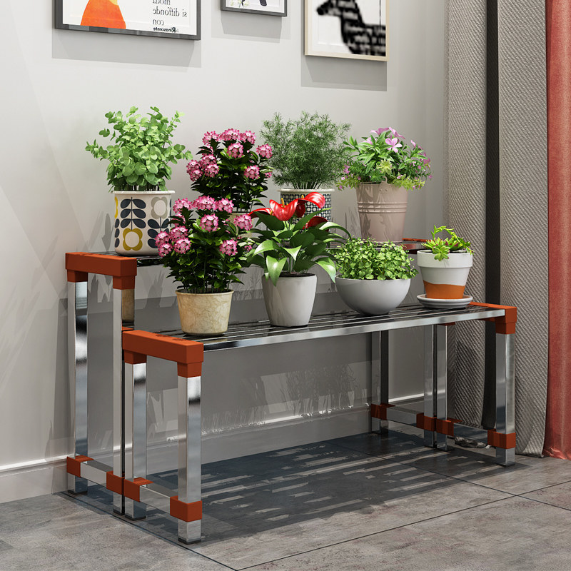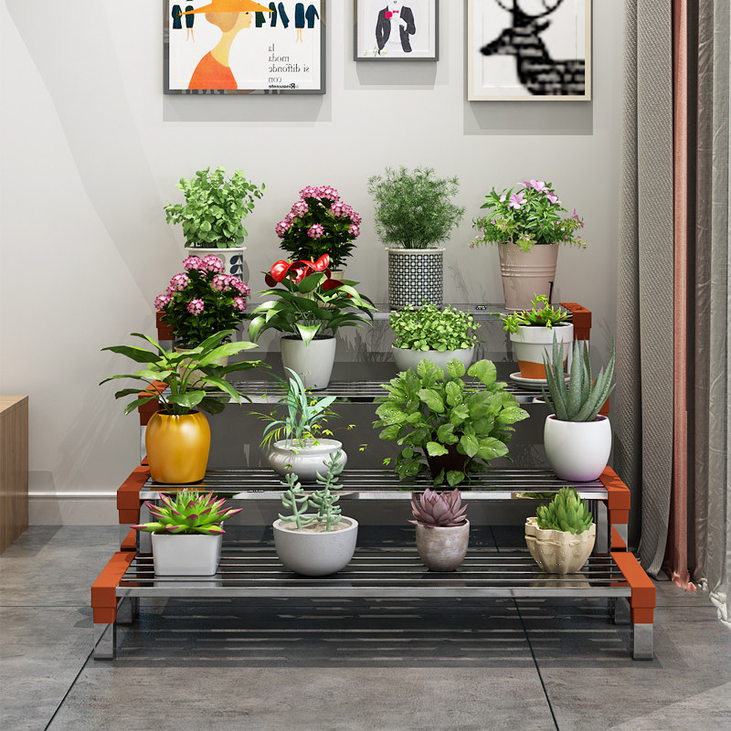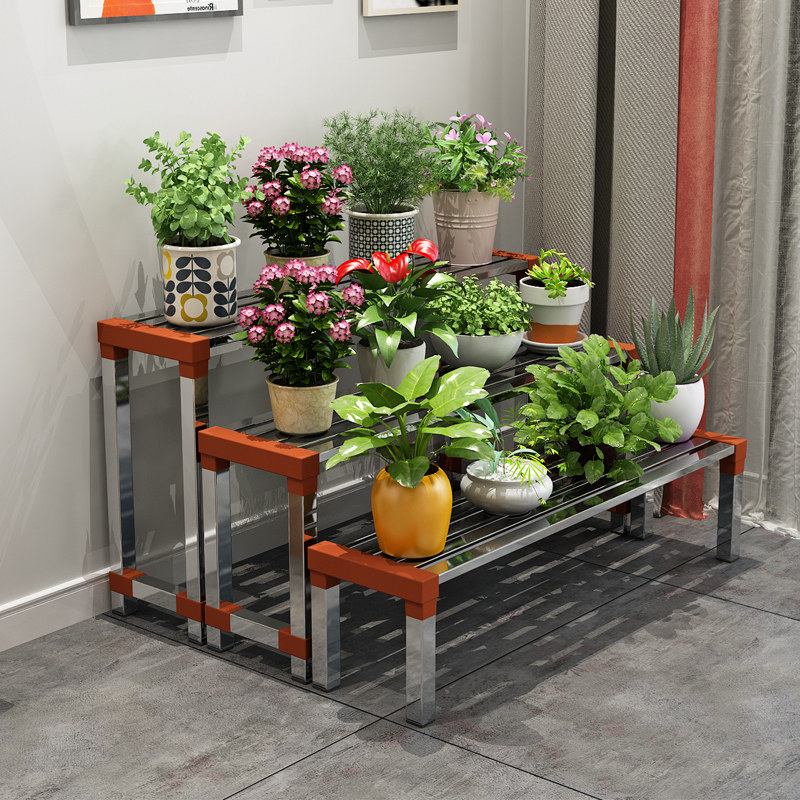 Stainless steel balcony flower shelf wrought iron ladder floor-to-ceiling multi-layer succulent living room storage outdoor decorative flower pot rack