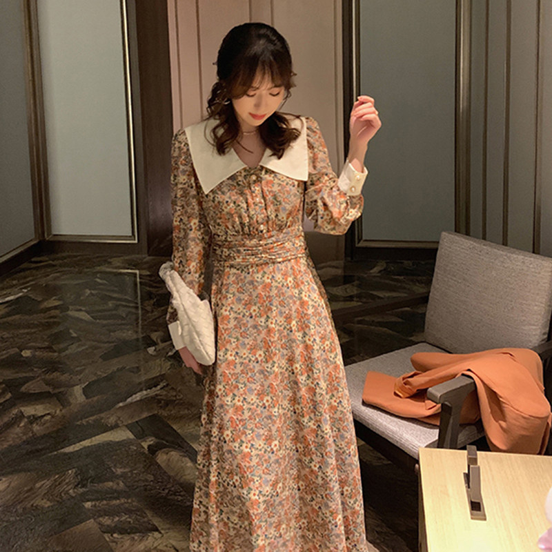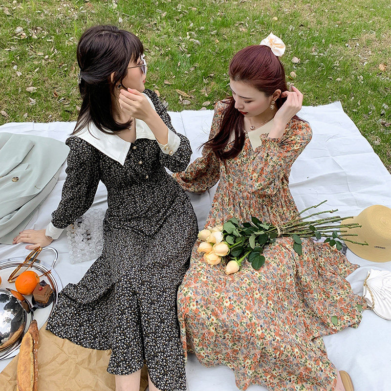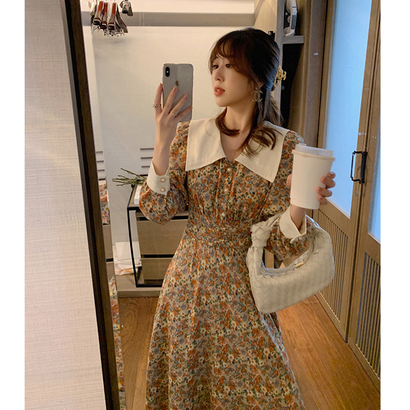 Fa-style retro Herben windy with a kneecap length skirt design senses a little crowdsourced dress 2021 Early autumn new women's dress