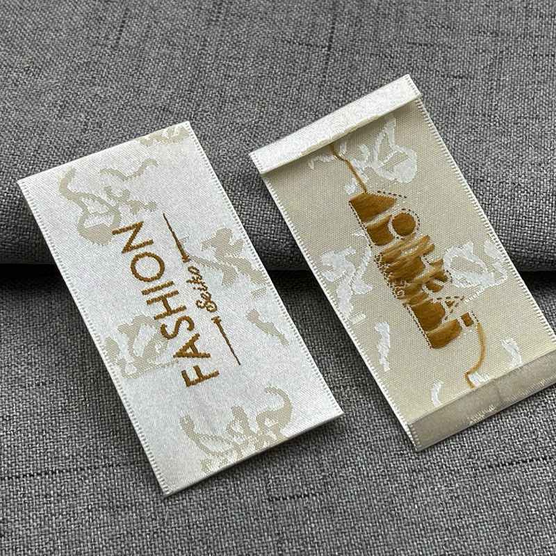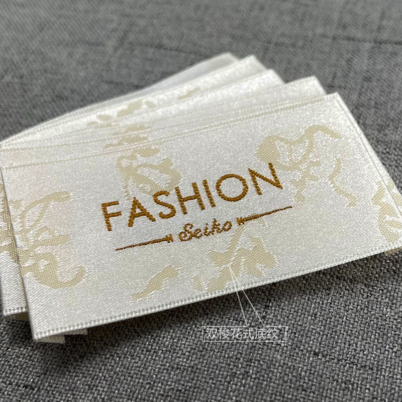 High-end women's collar label cloth label clothing main mark design custom LOGO weaving mark wood shuttle machine satin spot universal