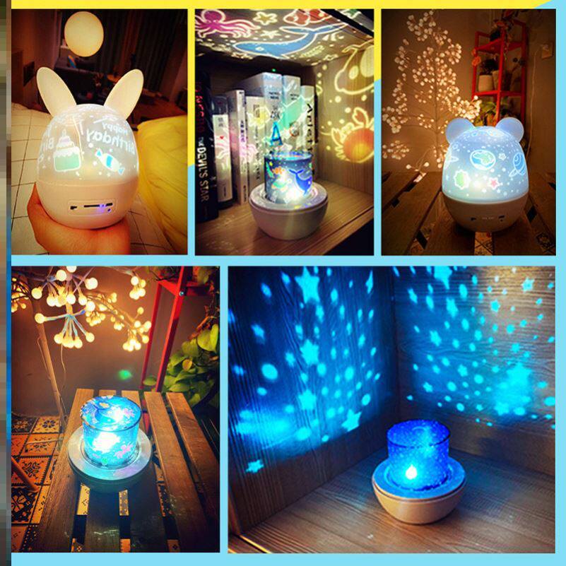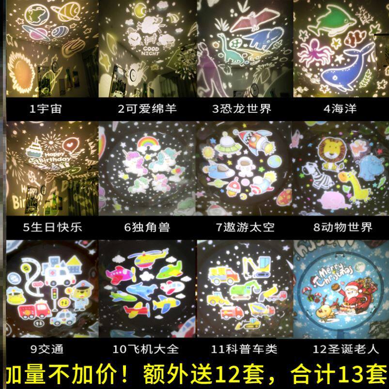 Seven Colors Pattern Projector Lamp Girl Laser New Year Small Lamp Cartoon Projection Lamp Starry Sky Romantic Rotating Colorful Cute