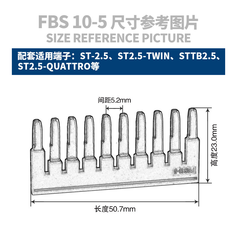 FBS10-5 central connection strip pure copper ST2 5 insert-pull type spring terminal short contact sheet short contact strip
