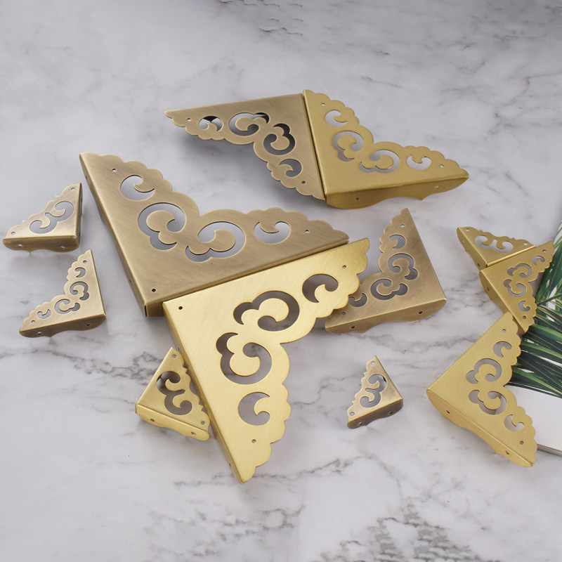 Chinese imitation antique pure copper clad edge guard corner bag corner Zhangwood case first decoration case table retro corner flower Xiangyun hollowed-out corner code