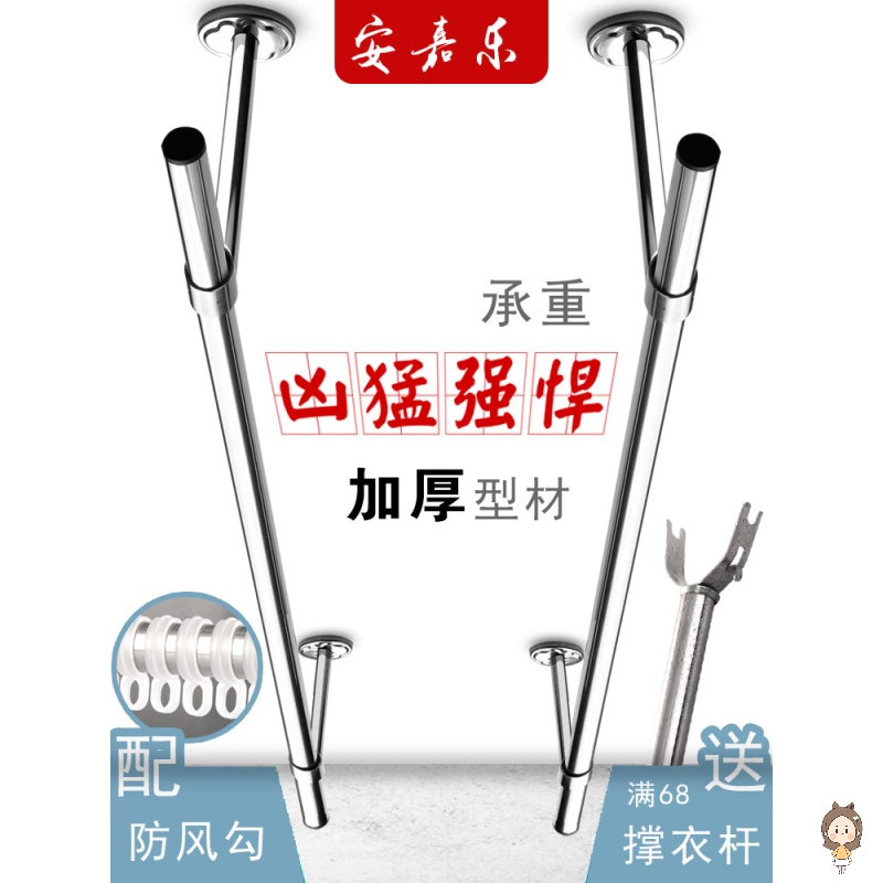 Drying rack clothes rail single pole roof straight pole type clothes rail one pole punch hole indoor stainless steel thickening fixed