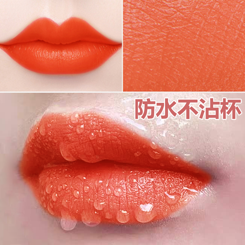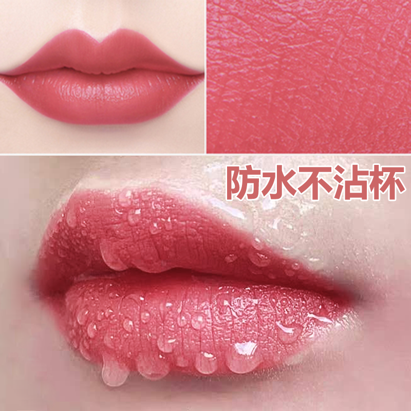 Bean Sand Powder with light makeup Pink Lipstick Red Raincoat Matt not dropping color Persistent explicit white water resistant without a cup