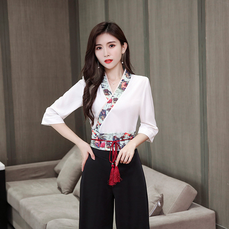 Beautician Chinese work clothes spring summer 2022 new wellness room technician frock foot therapy foot bath work clothes cashew
